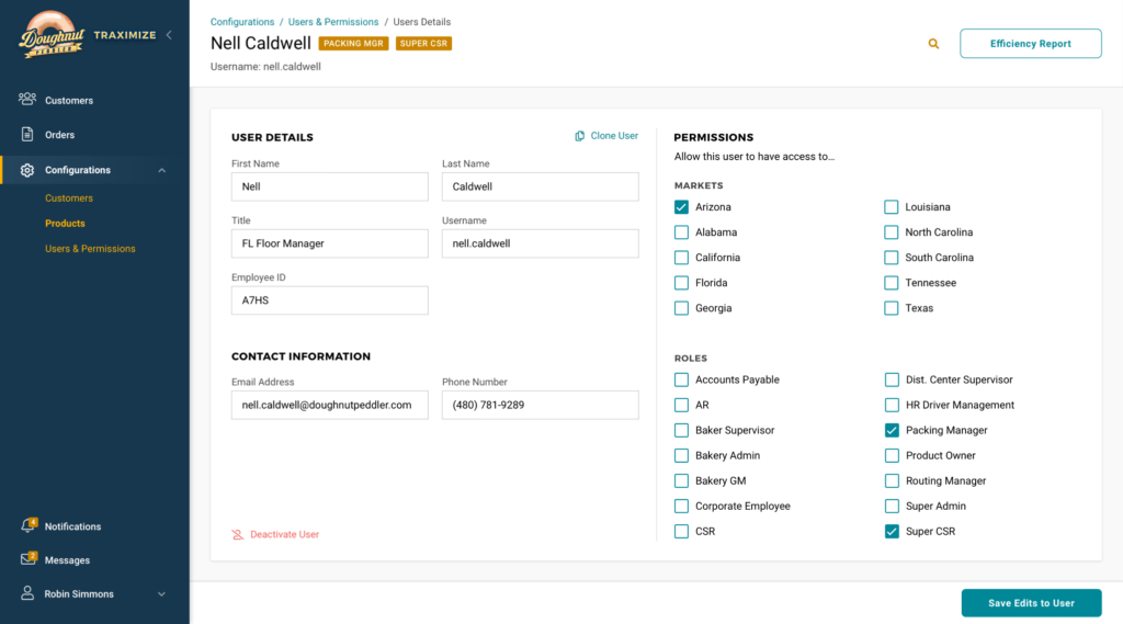 Doughnut Peddler distributes wholesale donuts and pastries to convenience stores, restaurants, and grocers. My team was tasked to redesign their internal software, Traximize, to be more intuitive, user friendly, and solve issue such as managing user permissions and resolving conflicting profile updates.
